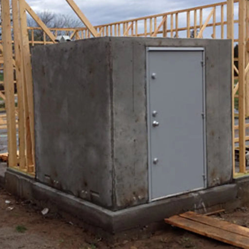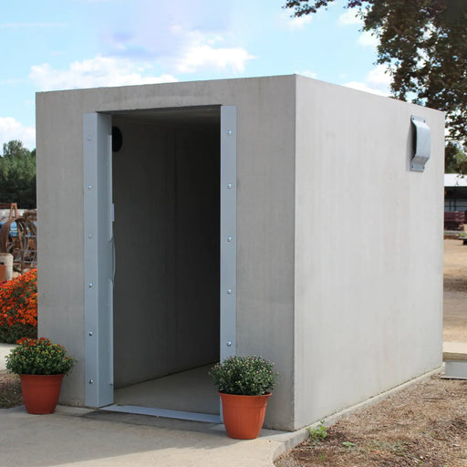 Home Defend Pro4'x8'x6'2" Concrete Safe Room This concrete saferoom has 4" thick walls and is poured with a rebar cage. It has a standard 36" steel door with th...